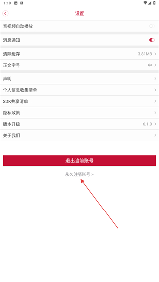 3、進(jìn)入設(shè)置的頁(yè)面內(nèi),點(diǎn)擊下方永久注銷賬號(hào)的按鈕。