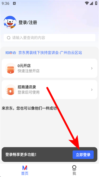 1、打開京麥APP,點擊右下角立即登錄,進入登錄選擇頁面。