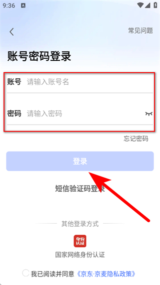 3、在賬號密碼登錄頁面,輸入賬號名和密碼,點擊登錄完成登錄操作。