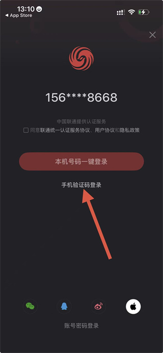 3、在登錄選擇界面,點(diǎn)擊手機(jī)驗(yàn)證碼登錄選項(xiàng),進(jìn)入驗(yàn)證碼登錄頁(yè)面。