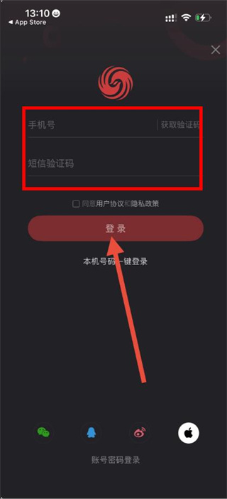 4、輸入手機(jī)號(hào)和短信驗(yàn)證碼,勾選同意點(diǎn)擊登錄按鈕,即可完成登錄操作。