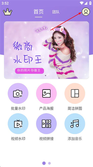 1、打開微商水印王,點擊右上角人像圖標,進入個人中心頁面。