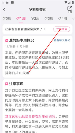 2、在孕期頁(yè)面的最上方,點(diǎn)擊立即邀請(qǐng)。