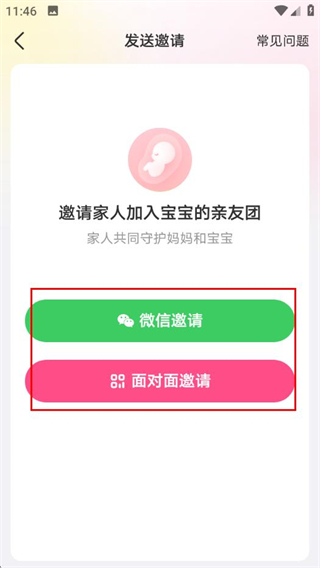 3、在發(fā)送邀請(qǐng)頁(yè)面選擇邀請(qǐng)方式,即可關(guān)聯(lián)老公加入寶寶的親友團(tuán)。
