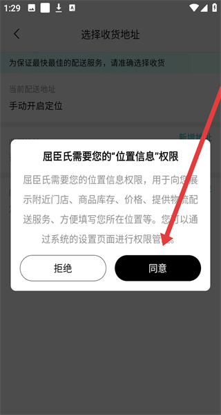 3、彈窗點(diǎn)擊“同意”,進(jìn)入選擇收貨地址頁(yè)面。