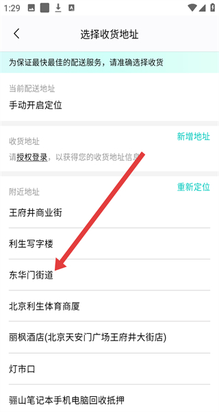 4、在附近地址列表中選擇目標(biāo)店鋪所在位置,即可完成手動(dòng)定位店鋪位置操作。
