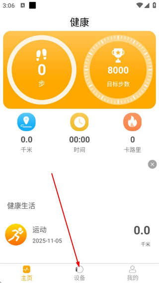 1、打開QRunning APP,點(diǎn)擊底部導(dǎo)航欄的設(shè)備選項(xiàng)。