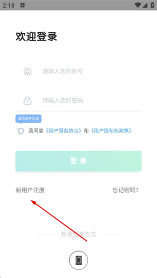 2、在登錄頁面點(diǎn)擊新用戶注冊(cè),進(jìn)入新用戶注冊(cè)頁面。