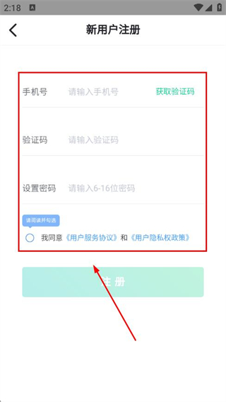 3、填寫手機(jī)號(hào)、驗(yàn)證碼、設(shè)置密碼,勾選協(xié)議,即可完成注冊(cè)操作。