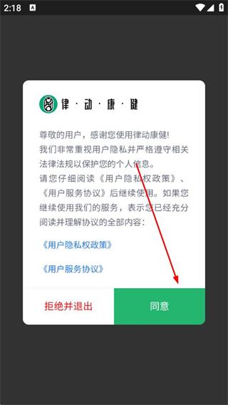 1、打開律動(dòng)康健教練端APP,在隱私協(xié)議頁面點(diǎn)擊同意。