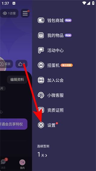 3、在功能菜單中點擊設(shè)置,進入設(shè)置頁面。