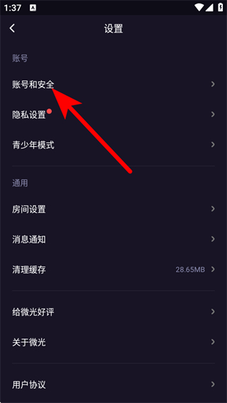 3.進入設(shè)置界面后,點擊賬號和安全選項。