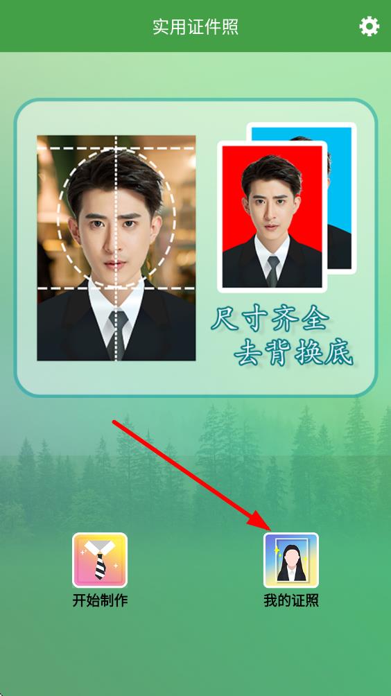 1、打開實(shí)用證件照app,在主界面點(diǎn)擊我的證照選項(xiàng),進(jìn)入保存照片查看頁面。