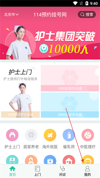 1、打開114預(yù)約掛號網(wǎng)APP,點擊底部導(dǎo)航欄我的。