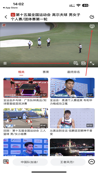 現(xiàn)在更新增全天候直播中央電視臺CCTV5體育頻道,CCTV5+體育賽事頻道等多個電視頻道視頻直播,確保你絕不錯過任何一場精彩的比賽,及時了解最熱的體育資訊。