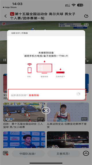 3、進(jìn)入搜索設(shè)備的界面內(nèi),要求連接同一Wi-Fi下即可投屏成功。