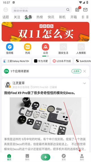1、打開酷安APP,點擊右下角的我的頁面,即可進入個人中心。