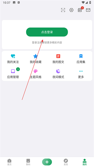 2、在我的頁面,點擊綠色的點擊登錄按鈕,即可進入登錄頁面。