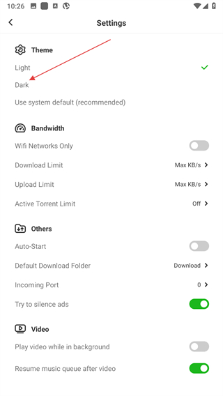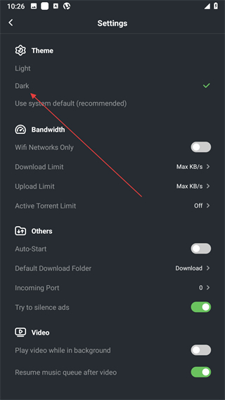 3、在Settings頁面,找到Theme選項下的Dark。