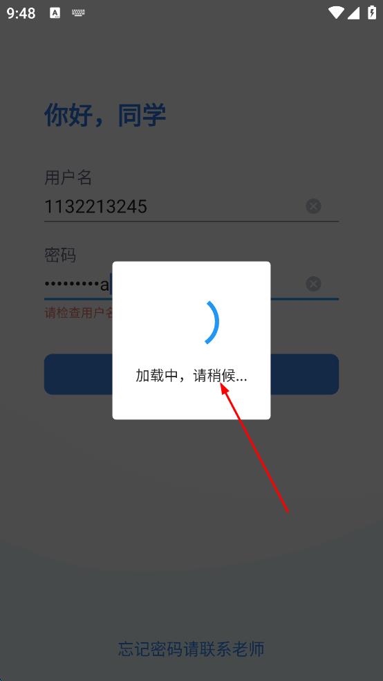 4、點擊“登錄”后,界面會出現(xiàn)“加載中,請稍候...”的提示,此時需耐心等待,直至加載完成,完成整個登錄操作。