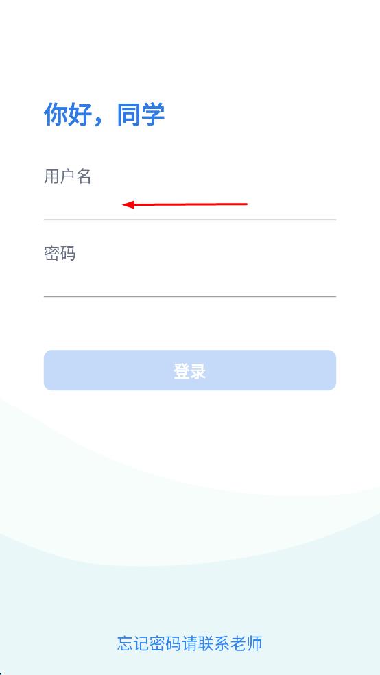 1、找到學(xué)習(xí)類軟件的登錄界面,在顯示“用戶名”的輸入框處,輸入自己的用戶名,完成用戶名的填寫。