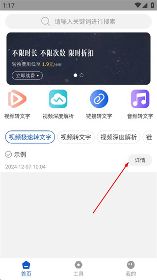 4、在轉(zhuǎn)換詳情頁面即可查看音視頻轉(zhuǎn)換后的文字內(nèi)容。
