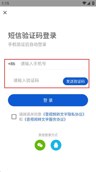 1、在輸入手機(jī)號(hào),點(diǎn)擊發(fā)送驗(yàn)證碼,輸入收到的驗(yàn)證碼。