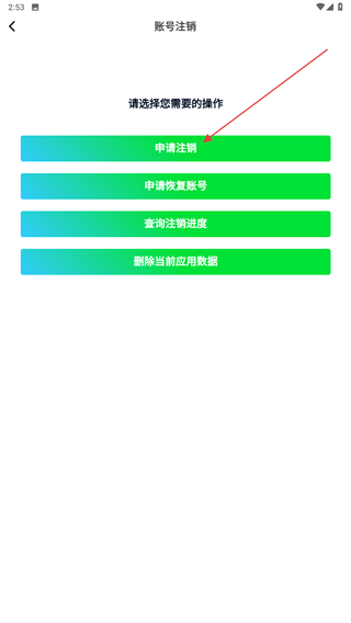 4、進(jìn)入賬號(hào)注銷(xiāo)的頁(yè)面內(nèi),選擇并點(diǎn)擊申請(qǐng)注銷(xiāo)即可。