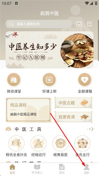 1、打開扁鵲中醫(yī)APP,點(diǎn)擊底部導(dǎo)航欄中的我的選項(xiàng)。