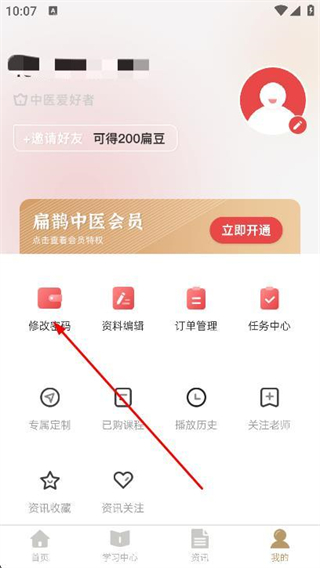 2、在我的頁面中,找到并點(diǎn)擊下方修改密碼選項(xiàng)。