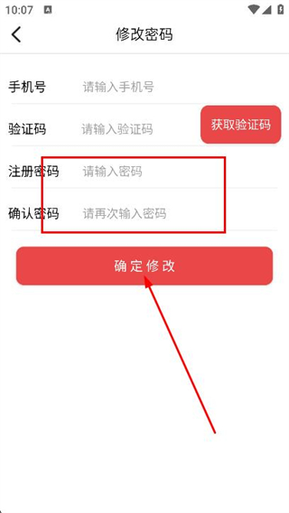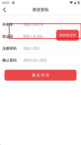 3、在修改密碼頁面,輸入手機(jī)號和收到的驗(yàn)證碼。