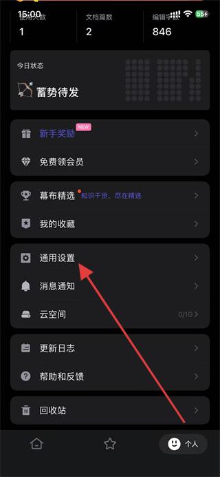 2、在個人頁面中,找到并點擊下方通用設(shè)置選項。