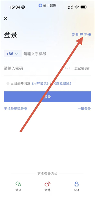 3、在登錄頁面,點(diǎn)擊新用戶注冊(cè)選項(xiàng),進(jìn)入注冊(cè)界面。