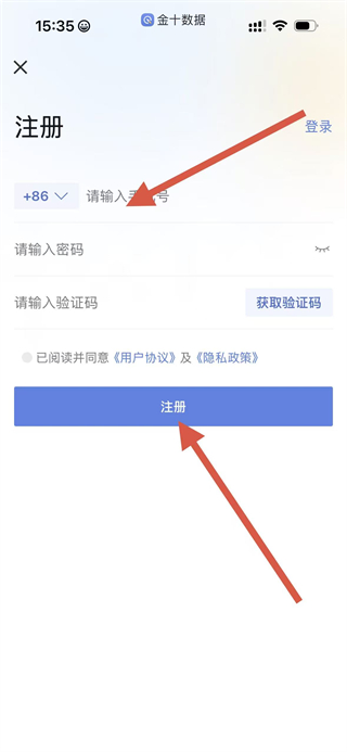 4、在注冊(cè)界面,填寫信息,勾選協(xié)議后點(diǎn)擊注冊(cè),完成注冊(cè)操作。