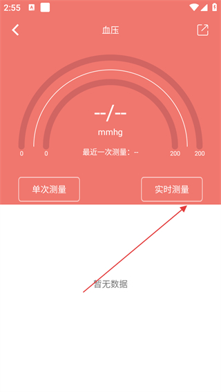 3、在血壓頁(yè)面點(diǎn)擊實(shí)時(shí)測(cè)量,即可進(jìn)行血壓測(cè)量操作。