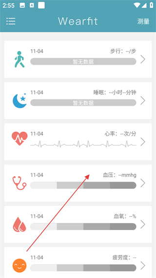 2、在主頁(yè)面,點(diǎn)擊血壓選項(xiàng)。