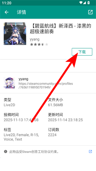 4、在詳情界面,點(diǎn)擊下載按鈕,下載完成后即可完成桌寵設(shè)置操作。