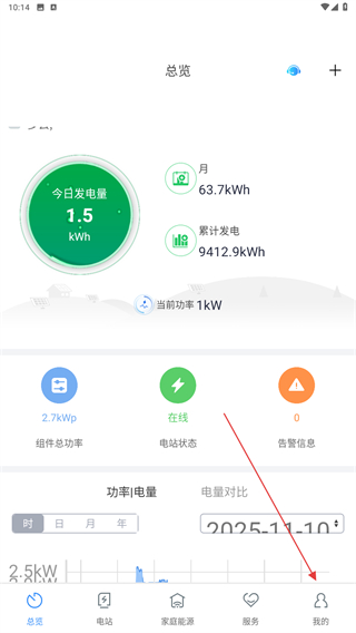 1、打開古瑞瓦特監(jiān)控,進(jìn)入時點擊右下角我的圖標(biāo),