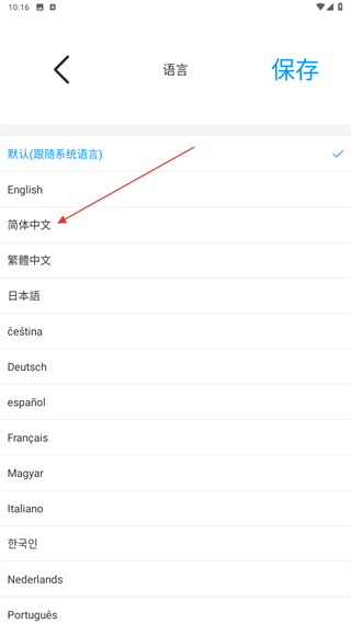 4、進(jìn)入語言的頁面內(nèi),選擇要更換的語言并點擊。