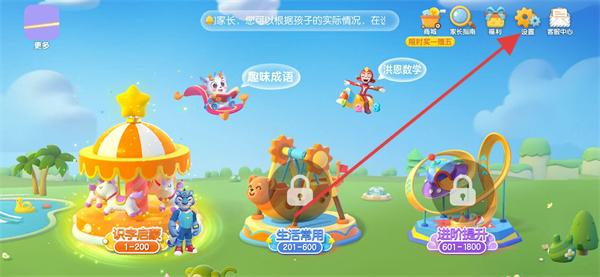 1、打開洪恩識字app,點(diǎn)擊右上角的設(shè)置圖標(biāo)。