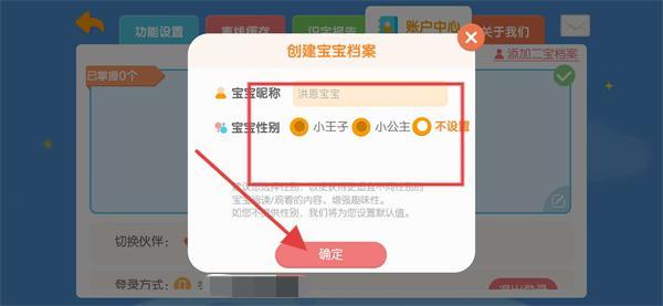 4、填寫寶寶信息,點(diǎn)擊確定按鈕,即可成功添加。