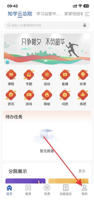 1、打開知學(xué)云app,點(diǎn)擊底部導(dǎo)航欄的我的選項(xiàng)。