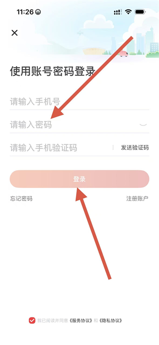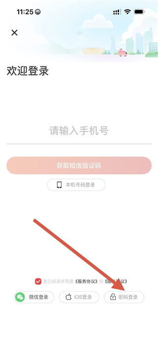 3、在登錄頁(yè)面,點(diǎn)擊密碼登錄選項(xiàng),進(jìn)入賬號(hào)密碼登錄界面。