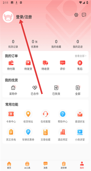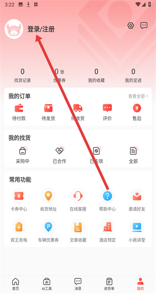2、個(gè)人中心頁(yè)面點(diǎn)擊“登錄/注冊(cè)”,進(jìn)入登錄界面。