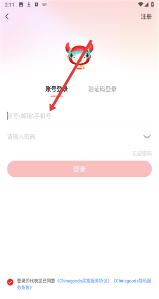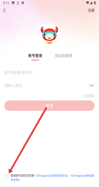 3、進(jìn)入到登錄頁(yè)面中,在登錄前需先點(diǎn)擊勾選下方同意按鈕后操作。