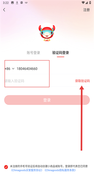 4、驗(yàn)證碼登錄頁(yè)輸入手機(jī)號(hào),點(diǎn)擊“獲取驗(yàn)證碼”,輸入收到的驗(yàn)證碼后完成登錄。