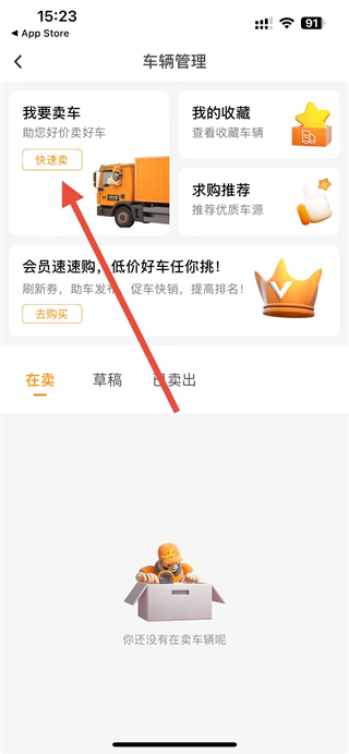 2、在車輛管理頁(yè)面,點(diǎn)擊快速賣選項(xiàng),進(jìn)入填寫車輛信息頁(yè)面。