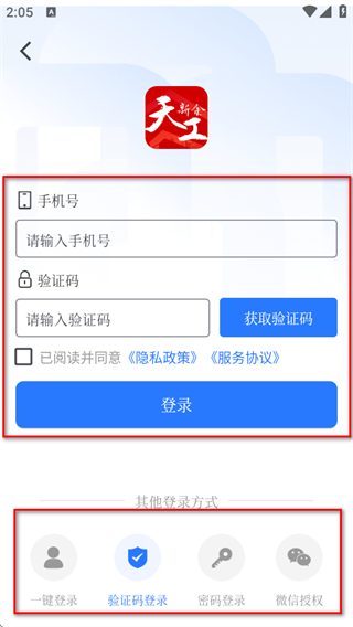 3、可選擇驗(yàn)證碼登錄,輸入手機(jī)號和驗(yàn)證碼點(diǎn)擊登錄即可,也可選擇其他登錄方式。