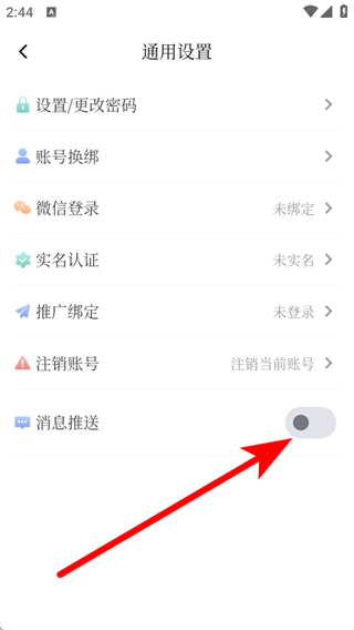3、在通用設(shè)置頁面,找到點(diǎn)擊消息推送選項(xiàng),即可開啟推送功能。