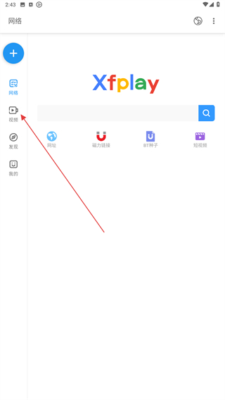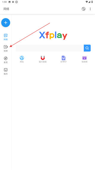 1、打開(kāi)影音先鋒APP,進(jìn)入時(shí)點(diǎn)擊左側(cè)視頻的按鈕。